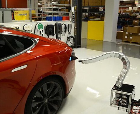據(jù)海外媒體報道,特斯拉此次開發(fā)的電動車自動充電器外形酷似“固態(tài)金屬蛇”,當電動車需要充電時,其可以自動從墻上伸出來并連接到電動車充電接口,完成整個過程僅需5秒鐘且不需任何人工操作。