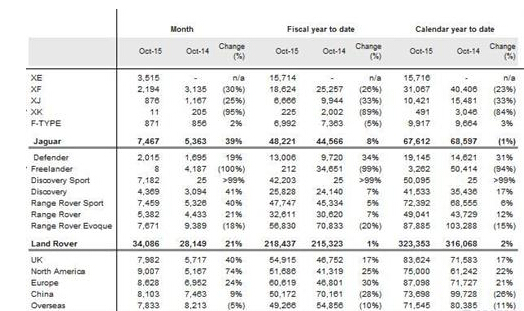 捷豹路虎日前公布了10月份全球銷量數(shù)據(jù),上個(gè)月該公司在華銷量止跌回升,全球銷量增幅超過(guò)兩成。 今年10月份,捷豹路虎全球新車零售銷量為41,553輛,去年同期為33,512輛,同比增幅達(dá)24%;1至10月份,該公司累計(jì)零售銷量為390,665輛,同比提升2%。 兩大品牌中,捷豹10月銷量為7,467輛,較去年同期的5,363輛勁增39%。各車型中XF、XJ以及停產(chǎn)的XK銷量均下滑,F(xiàn)-TYPE則實(shí)現(xiàn)了2%的增長(zhǎng),此外新上市的XE也貢獻(xiàn)了3,515輛銷量,成為品牌下嘴暢銷車型。 前10個(gè)月中,捷豹累計(jì)零售銷量為67,612輛,同比下滑1%,XE上市以來(lái)累計(jì)銷量已經(jīng)達(dá)到15,716輛。 路虎品牌10月新車銷量也實(shí)現(xiàn)了21%的增長(zhǎng),由去年的28,149輛增至34,086輛;攬勝極光雖然遭遇18%的下滑,但仍是品牌下最暢銷的車型,其它攬勝運(yùn)動(dòng)版同比勁增40%至7,459輛,發(fā)現(xiàn)同比攀升41%至4,369輛。 1至10月中,路虎品牌累計(jì)全球新車零售量為323,353輛,去年同期為316,068輛,同比提升了2%。攬勝極光累計(jì)銷量同比下滑15%至87,885輛,攬勝運(yùn)動(dòng)版同比上漲6%至72,392輛。