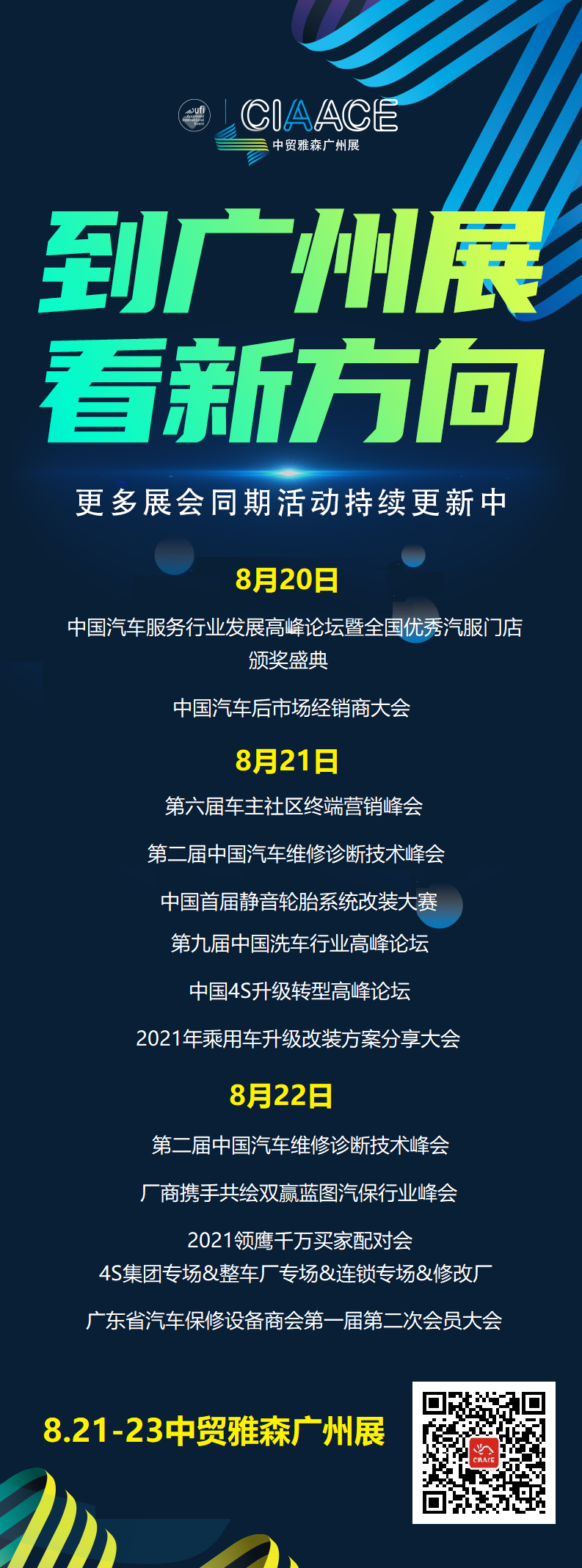 把脈行業(yè)趨勢(shì) 把握未來方向 第31屆中貿(mào)雅森廣州展聚焦市場(chǎng)、產(chǎn)品、政策等方面的熱點(diǎn)問題,精心打造中國(guó)汽車服務(wù)行業(yè)發(fā)展高峰論壇暨全國(guó)優(yōu)秀汽服門店頒獎(jiǎng)盛典、中國(guó)汽車后市場(chǎng)經(jīng)銷商大會(huì)、中國(guó)4S升級(jí)轉(zhuǎn)型高峰論壇、2021領(lǐng)鷹千萬買家配對(duì)會(huì)(4S集團(tuán)專場(chǎng)&整車廠專場(chǎng)&連鎖專場(chǎng)&修改廠)等近百場(chǎng)高品質(zhì)活動(dòng),匯聚眾多行業(yè)大咖,為您解析行業(yè)痛點(diǎn)難點(diǎn),助力把握市場(chǎng)大勢(shì),穩(wěn)抓機(jī)遇、搶灘布局。