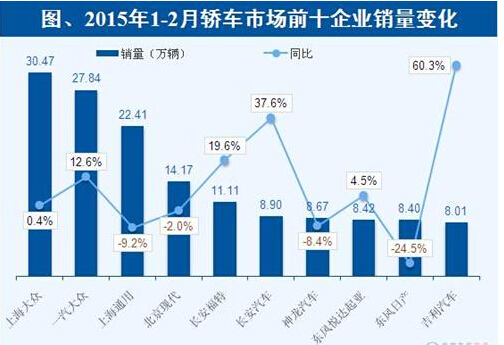 轎車企業(yè)前十:吉利強勢回歸作者:網(wǎng)站管理員 來源:中國汽車零部件 時間:2015/3/25 8:52:43 轎車增長趨停 再度放緩 受分流作用影響,轎車市場銷量增速再度放緩,今年前兩月增長趨停。隨著市場的愈發(fā)成熟所帶來的競爭也必定愈加激烈,然而其中南北大眾和上海通用這三大巨頭仍牢牢地把控著市場前三。其他企業(yè)排名則并不牢靠,座次重排,其中吉利汽車銷量高幅增長,強勢回歸前十。 根據(jù)蓋世汽車網(wǎng)整理的數(shù)據(jù),2015年1-2月,轎車市場銷售共計204.28萬輛,與去年同期旗鼓相當(dāng),在乘用車市場保持兩位數(shù)增長下,轎車銷售占比大幅下降,相比去年同期近七成的比重,今年跌至62.7%,同比下跌了7.0個百分點。這是其受SUV市場的分流作用的體現(xiàn)。 三巨頭把持四成份額 作為市場容量如此龐大的市場,轎車市場競爭也愈發(fā)的激烈。從市場前十企業(yè)來看,2015年1-2月,轎車市場銷售前十企業(yè)依次是上海大眾、一汽大眾、上海通用、北京現(xiàn)代、長安福特、長安汽車、神龍汽車、東風(fēng)悅達起亞、東風(fēng)日產(chǎn)和吉利汽車。