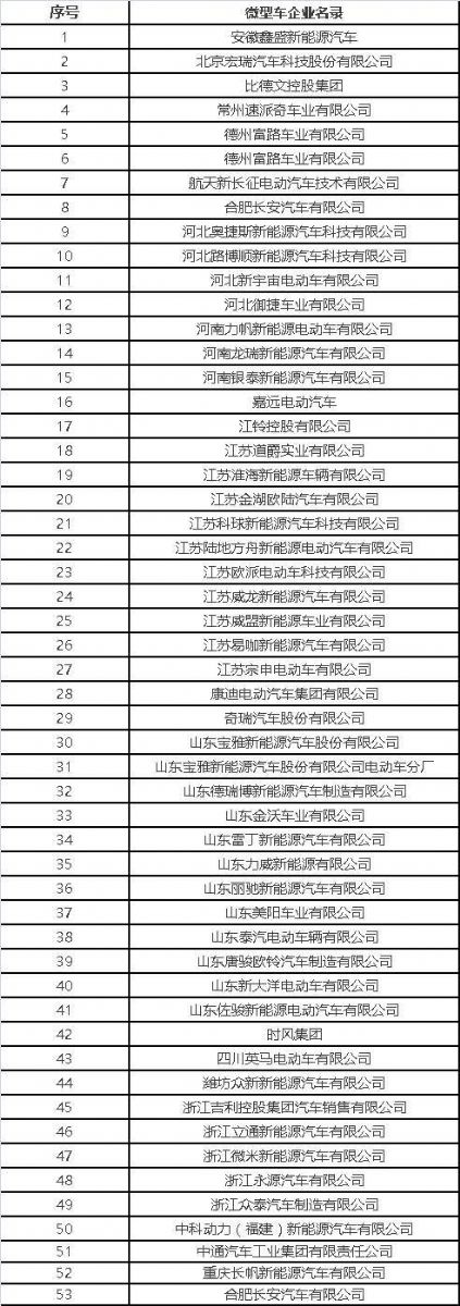 4、新能源微型車企業(yè)名錄