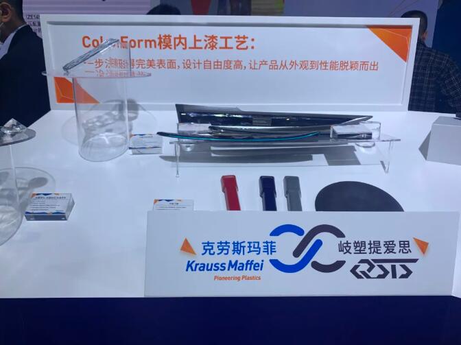 ▲克勞斯瑪菲在現(xiàn)場(chǎng)演示其首創(chuàng)的表面加工技術(shù)——ColorForm模內(nèi)上漆技術(shù)工藝,這是一種結(jié)合了注塑成型和聚氨酯加工的智能技術(shù)工藝,兼具可持續(xù)性和設(shè)計(jì)性,助力高端汽車內(nèi)飾件的可持續(xù)生產(chǎn)。