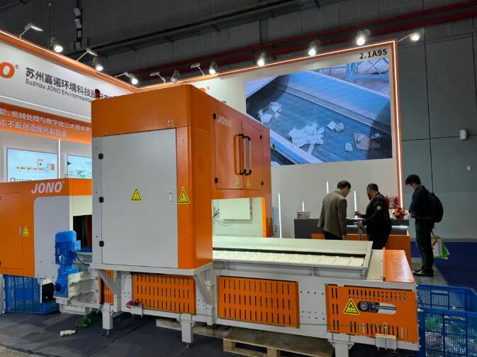 ▲嘉諾科技展示的AI可見光分選機(jī),廣泛應(yīng)用于各種再生塑料顏色、材質(zhì)分選等處理系統(tǒng)。具有分選速度快,分選范圍廣的特點(diǎn)。可同時(shí)實(shí)現(xiàn)3A瓶、4A瓶、5A瓶、大白、小白、花乙、花丙、雜塑料、PP餐盒等多種塑料材質(zhì)的識(shí)別分選,實(shí)現(xiàn)產(chǎn)品應(yīng)用場(chǎng)景的快速切換。