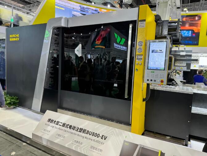▲博創(chuàng)帶來(lái)了大型二板式電動(dòng)注塑機(jī)BU800-EV。BU-EV系列產(chǎn)品是國(guó)內(nèi)首創(chuàng)大型二板式電動(dòng)注塑機(jī)。搭載工業(yè)物聯(lián)網(wǎng)模塊,實(shí)現(xiàn)智能互聯(lián);廣泛應(yīng)用于汽車零配件、家用電器等領(lǐng)域,主要用于生產(chǎn)體積較大、成型精度要求高的塑料制品。