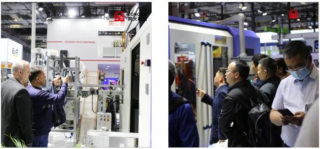 ▲蘇州同大機(jī)械有限公司展出的全電動(dòng)HSE系列設(shè)備,擁有節(jié)能高效、高精度、遠(yuǎn)程智能的優(yōu)勢(shì),比液壓吹塑設(shè)備能耗節(jié)約30%-50%,產(chǎn)量提高10-15%。自主研發(fā)程序以及獲得多項(xiàng)專利的關(guān)鍵技術(shù),展現(xiàn)了同大的創(chuàng)新技術(shù)實(shí)力。