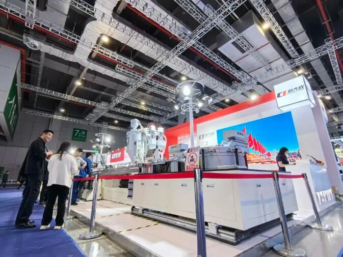 ▲新大成帶來(lái)了在滴灌帶生產(chǎn)線、打包帶生產(chǎn)線、塑料板片膜等多個(gè)領(lǐng)域的尖端裝備產(chǎn)品及智能解決方案。