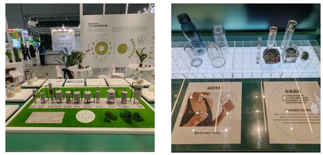 ▲浙江佳人新材料展示了化學(xué)法分子級(jí)循環(huán)再生技術(shù),該技術(shù)實(shí)現(xiàn)廢舊聚酯更高品質(zhì)、更高性能、更高價(jià)值的應(yīng)用。