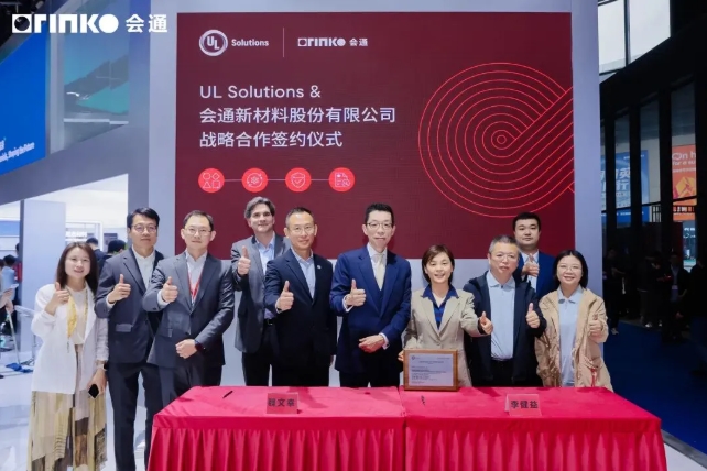 ▲圖源:聚風(fēng)塑料 展會(huì)期間,會(huì)通新材料股份有限公司正式與百年全球安全科學(xué)權(quán)威機(jī)構(gòu)UL Solutions簽署全域戰(zhàn)略框架協(xié)議。UL Solutions旗下黃卡認(rèn)證體系是全球通用的材料安全性能通用基準(zhǔn)。